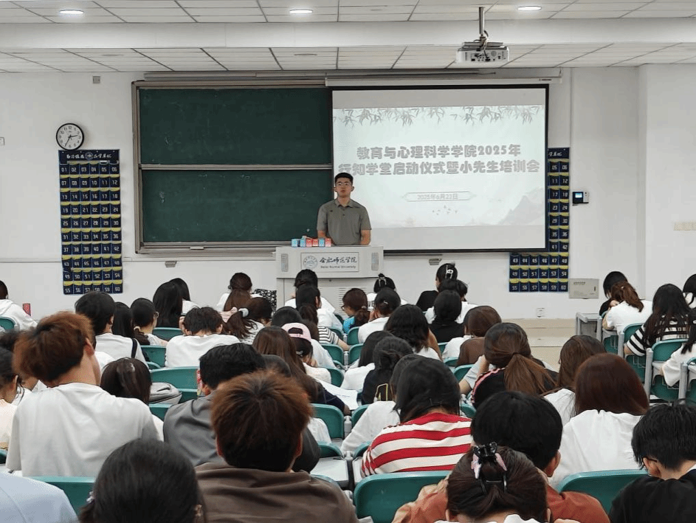 吴勇详细阐述了行知学堂的创办初衷、育人宗旨及历年实践成果,教育引导教院学子在服务乡村振兴、服务家乡发展中坚定信念、增长本领、作出贡献。他围绕 “角色定位”“教学规范”“安全管理” 三大模块展开系统培训,重点部署了安全防护工作。