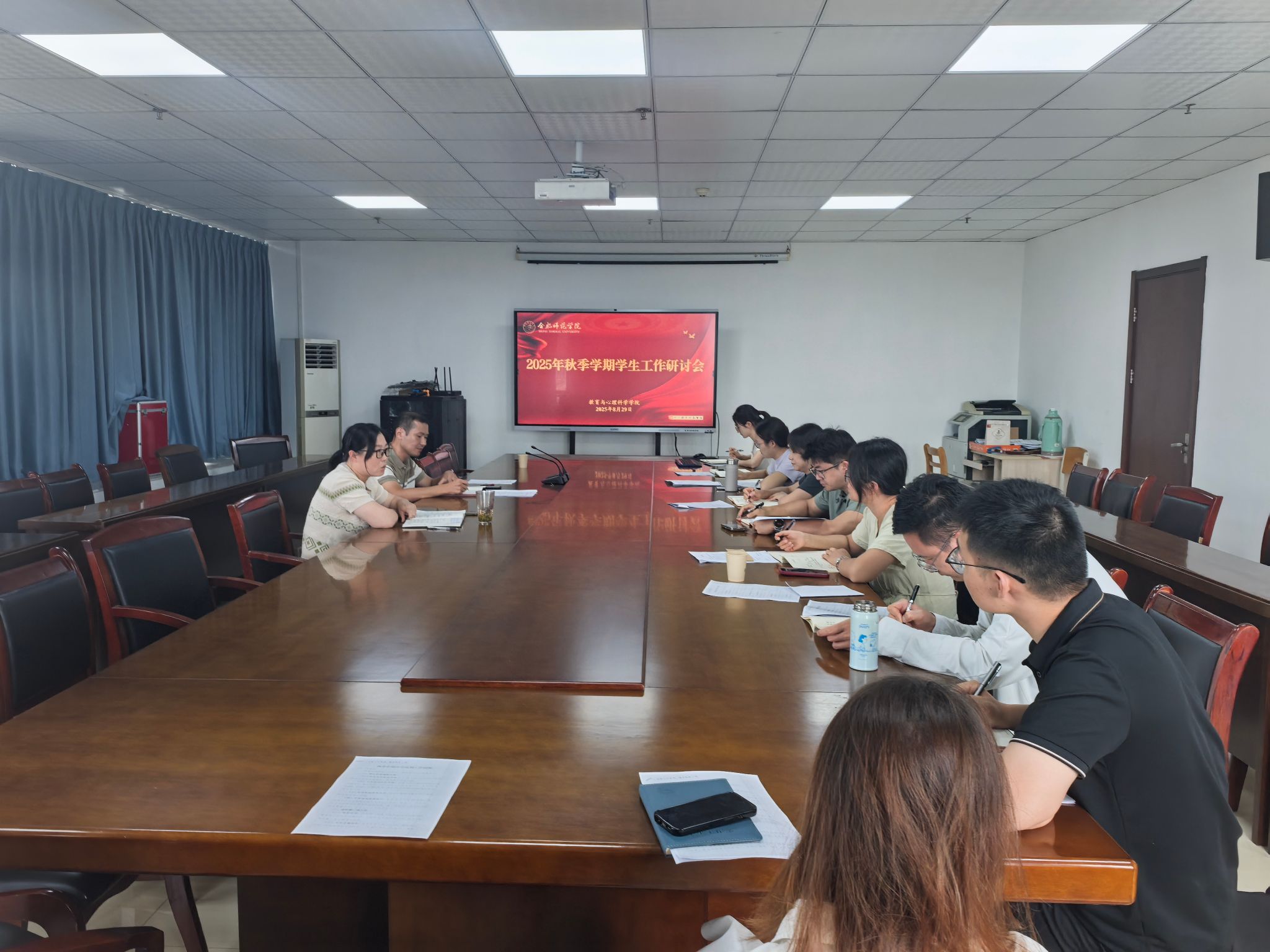 8月29日上午,beat365中文官方网站在锦绣校区行知楼710会议室召开新学期学生工作研讨会,围绕学生教育管理、安全稳定、学风建设、心理健康、就业指导等多个方面进行深入部署和交流。beat365中文官方网站党委书记董萍出席会议,全体专兼职辅导员参加会议。会议由beat365中文官方网站党委副书记陈帅主持。
