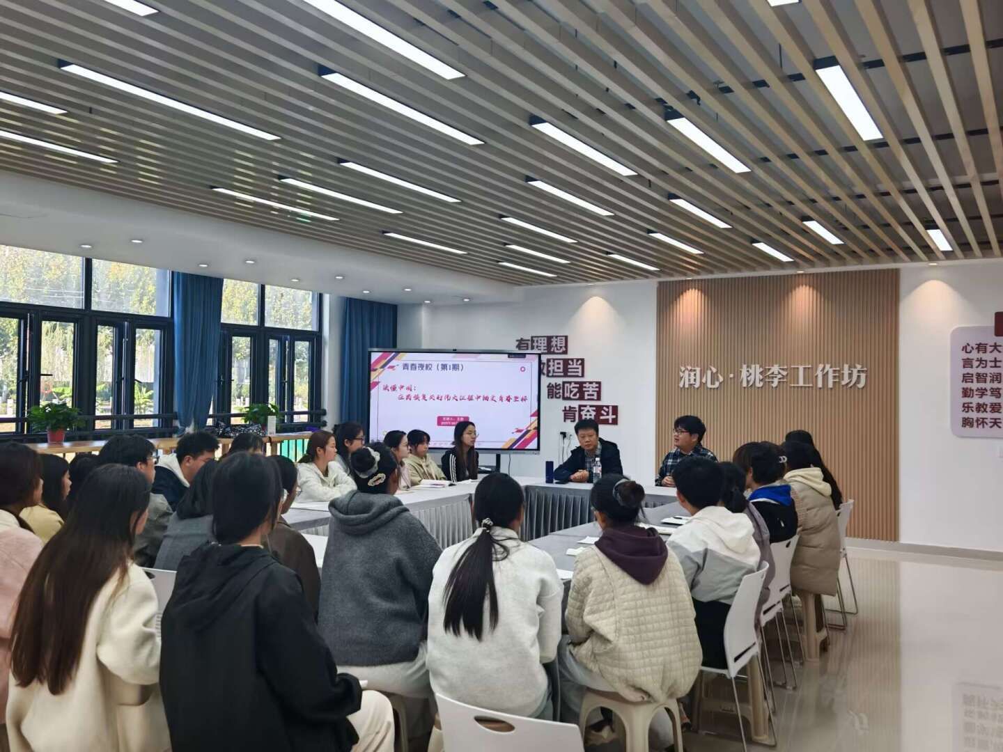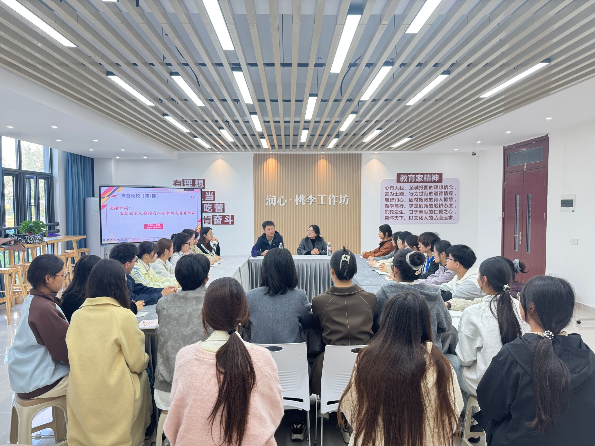 10月22日下午,beat365中文官方网站第1期《青春夜校》在滨湖校区12栋104室一站式学生社区“润心·桃李”工作坊正式启动。活动现场气氛热烈、布置温馨,师生齐聚一堂,共同见证这一聚焦青年思想引领和成长赋能的新平台扬帆起航。