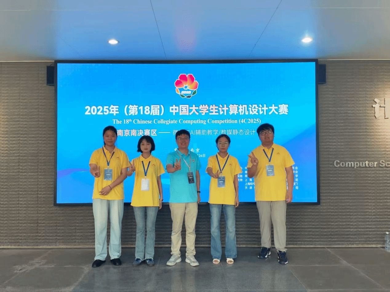 7月22日至25日,2025(第18届)中国大学生计算机设计大赛南京南赛区全国总决赛在南京大学仙林校区落下帷幕。beat365官网刘月月、胡逸飞、尹辰羲、尚一敏和胡玉君五名同学凭借作品《水的表面张力》,获得“微课与AI辅助教学”赛道全国二等奖。