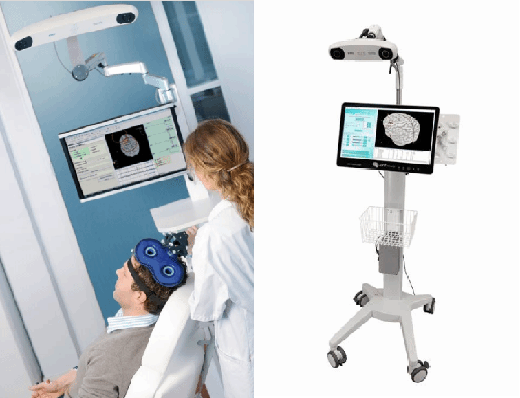 神经影像导航技术与TMS配套使用,可读取脑结构数据,通过导航定位使大脑内部被刺激部位可视化,并根据图像指示精确地将线圈定位到神经功能区。