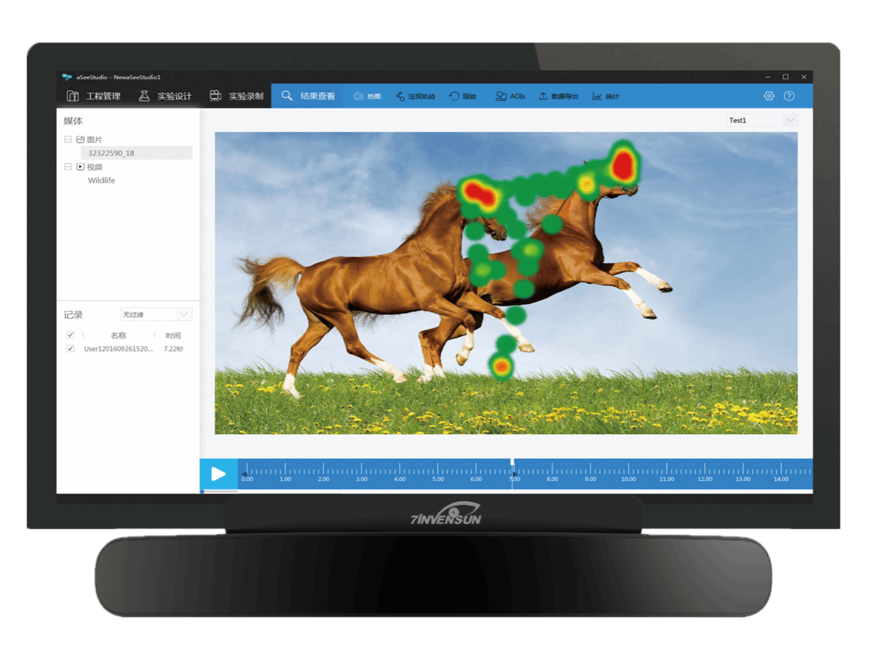 实验室还配有眼动仪,用于记录人在处理视觉信息时的眼动轨迹特征。眼动仪采用基于人眼三维模型的遥测式注视点追踪算法,无需固定头部,即可在55cm-80cm的距离范围内精准计算注视点坐标。支持图片、视频、录屏等素材的添加和实验设计,满足实验管理、设计、采集、分析的一体化需求。使用计算机显示器呈现各类刺激材料,在被试不穿戴任何设备的情况下记录眼动数据。